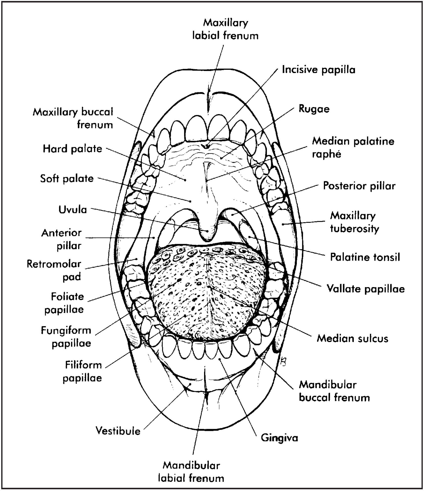 (viewed as if looking into the mouth).